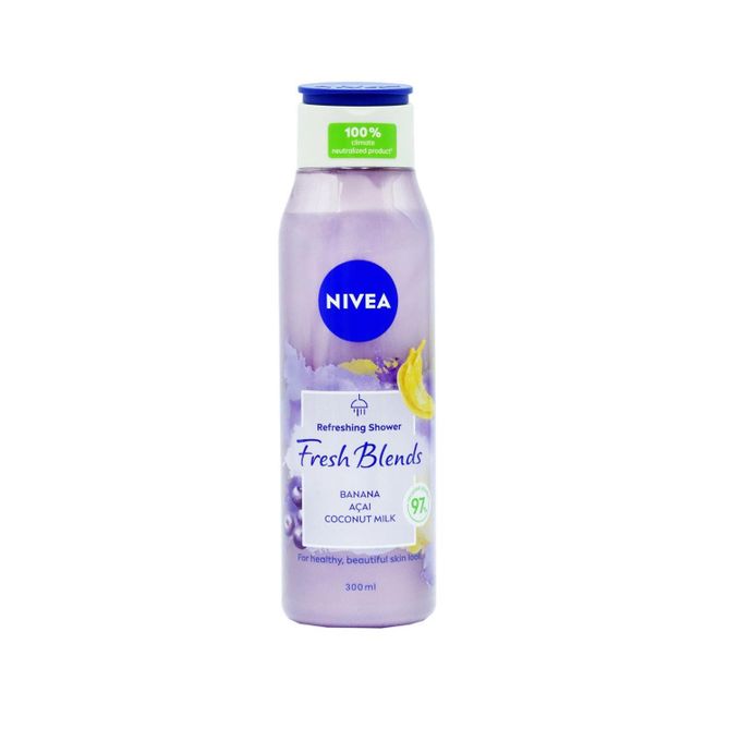 NIVEA Fresh Blends – Gel Douche Rafraîchissant à la Banane , Açaï , Lait de Coco Pour une peau belle et saine, jour âpres jour 300 ml